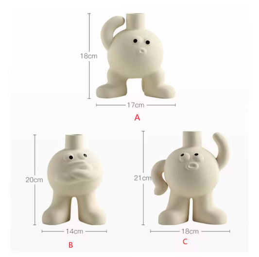 Big feet Flower vase scratching the head