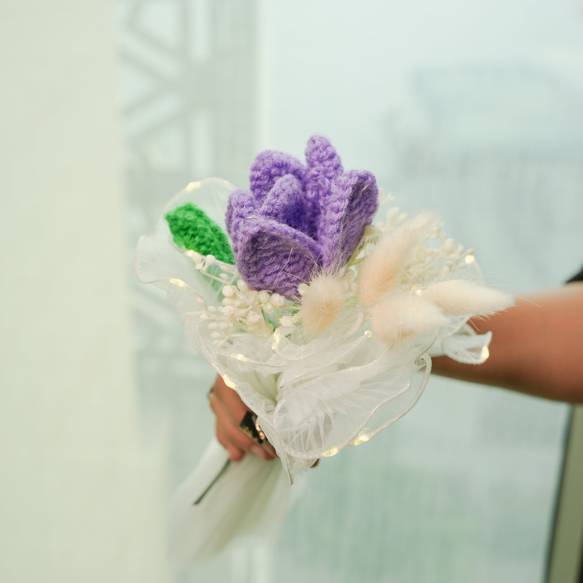 A crochet flower bunch is a charming and enduring alternative to traditional floral arrangements, meticulously handcrafted to capture the delicate beauty of nature. These bouquets are crafted using high-quality yarns.Each flower is individually crocheted, showcasing the artisan's skill and attention to detail.Unlike fresh flowers, crochet blooms do not wilt or fade, offering lasting beauty