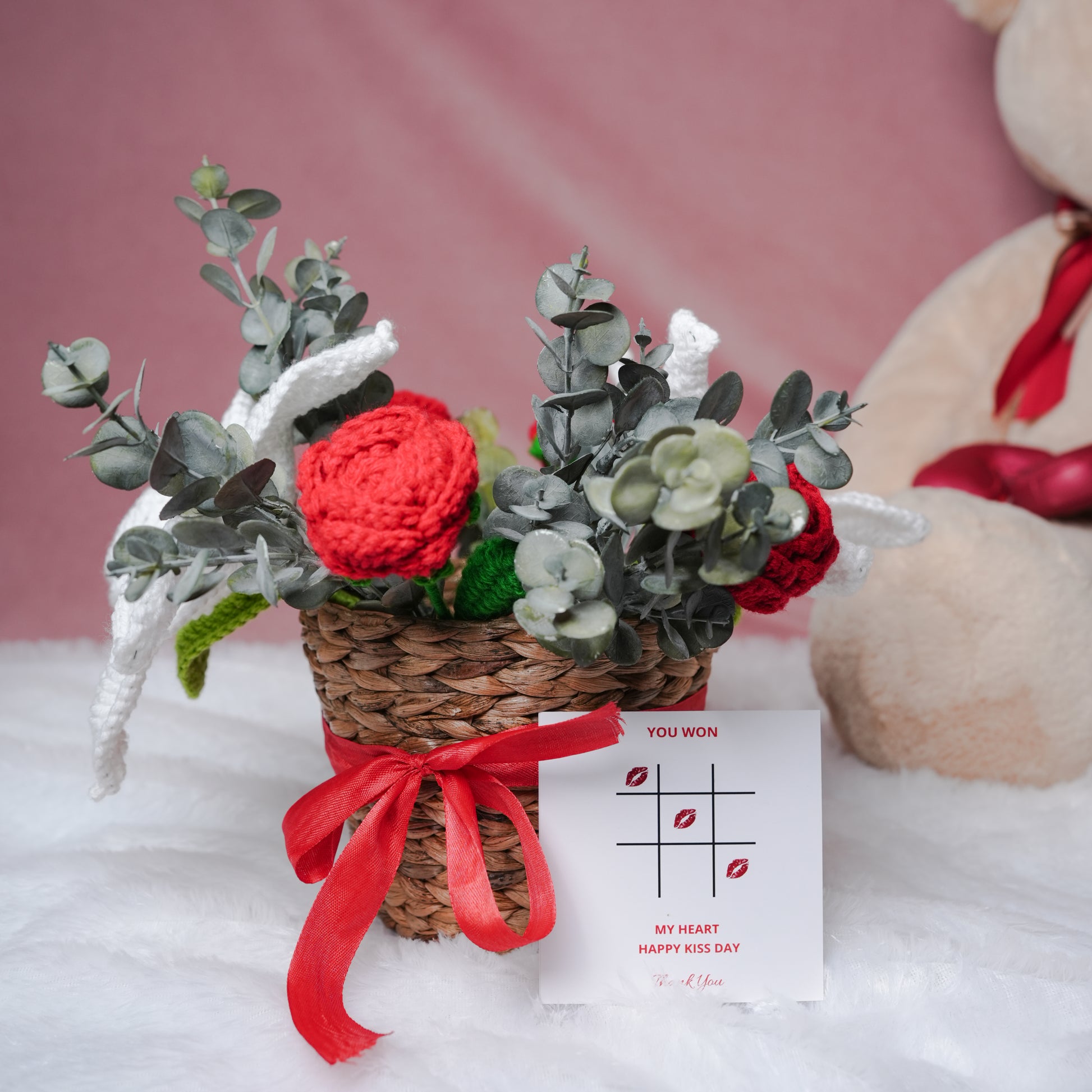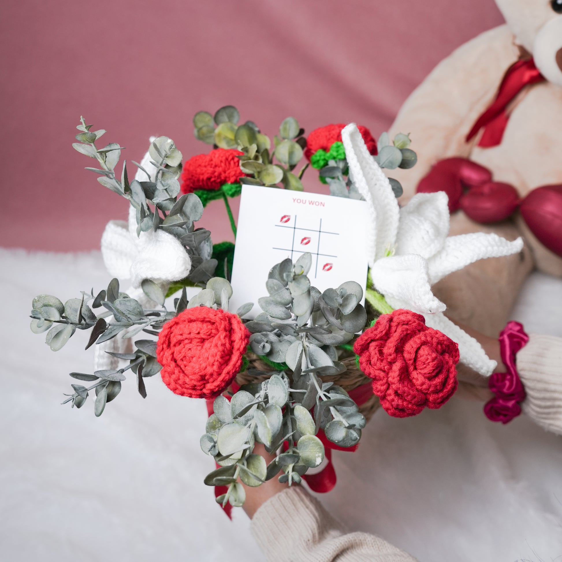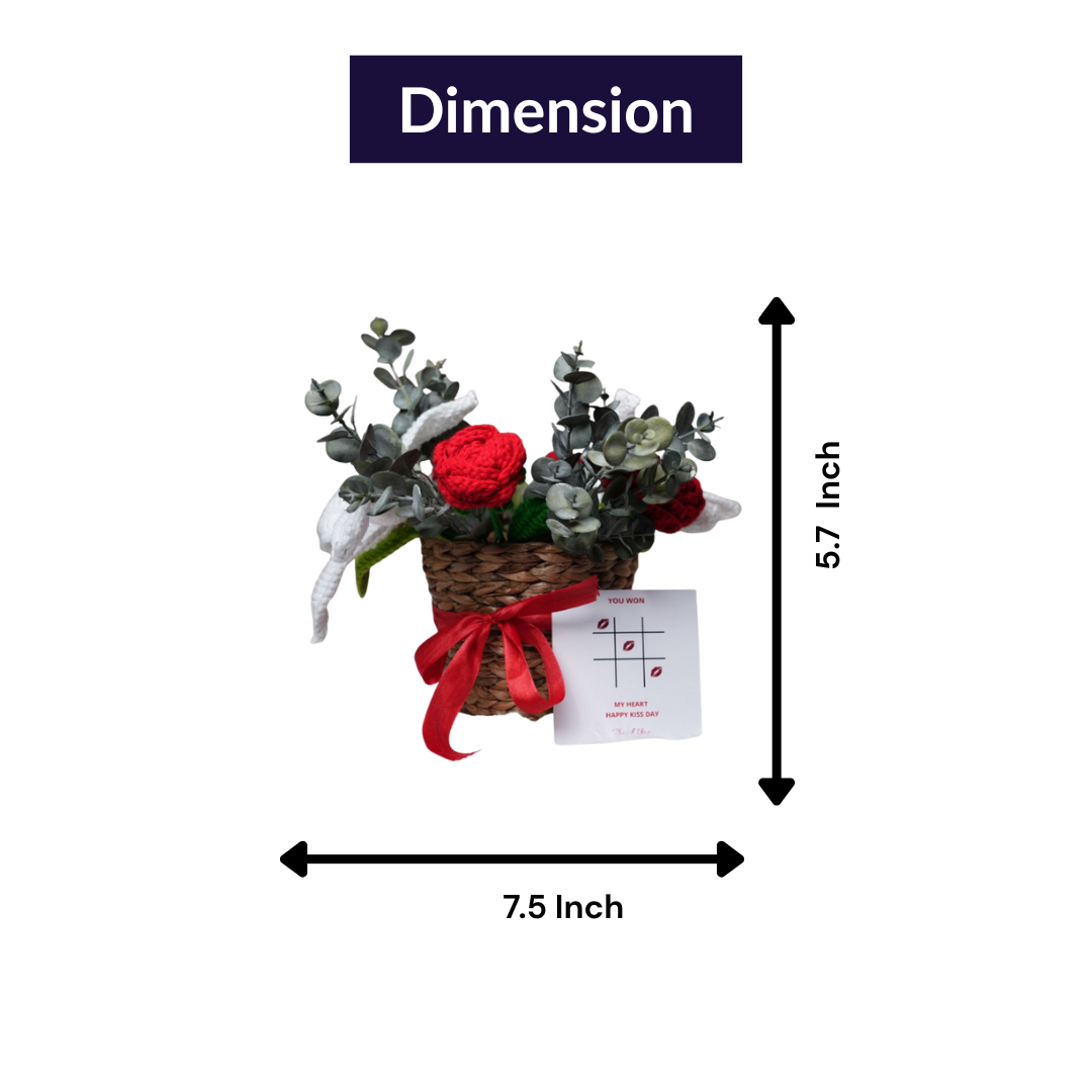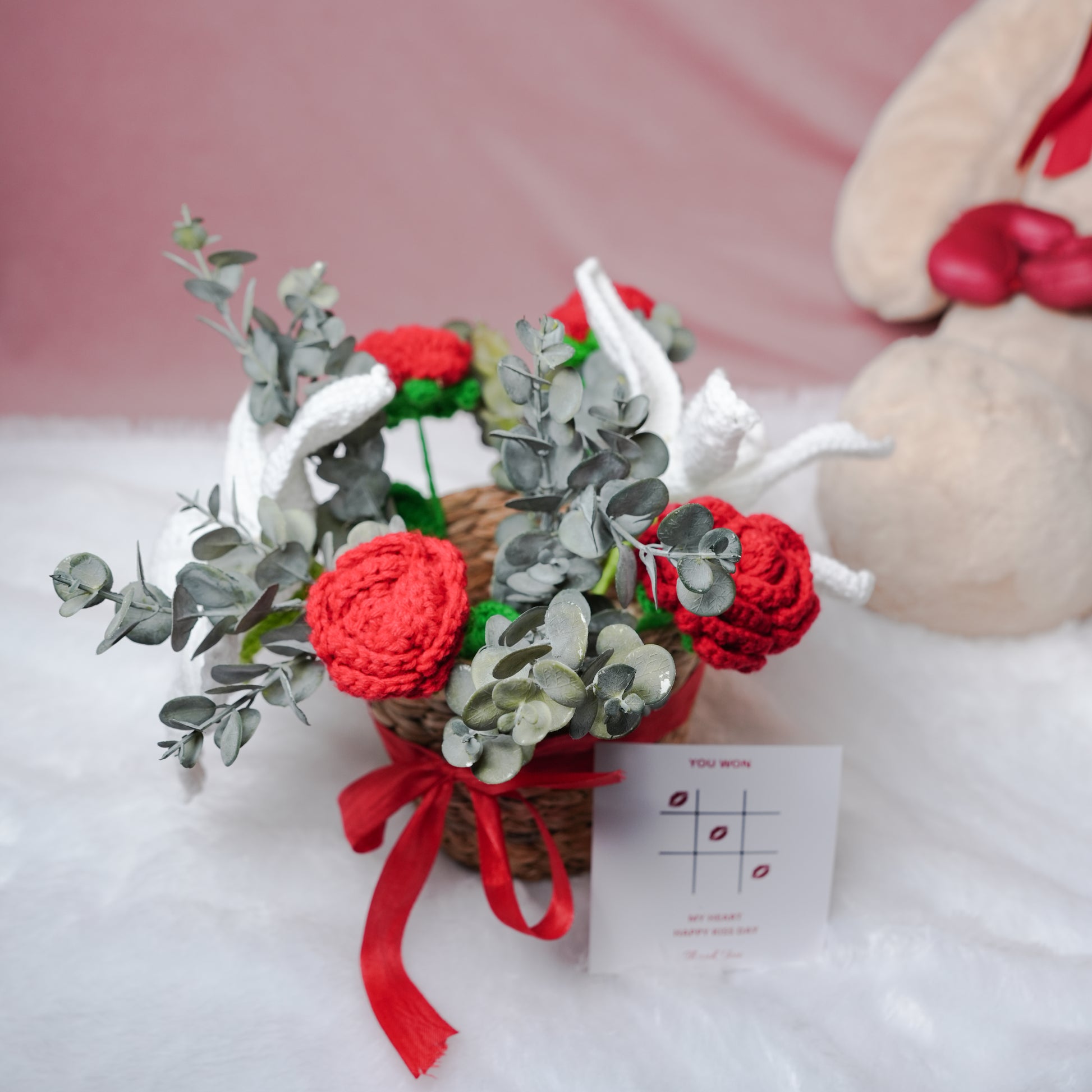 Designed to last longer than fresh floral arrangements, this basket blends handcrafted crochet flowers and high-quality decorative elements, ensuring beauty without the worry of wilting or maintenance. Its warm color palette of red, white, and green makes it a versatile décor piece even after gifting—perfect for tabletops, shelves, or cozy corners.